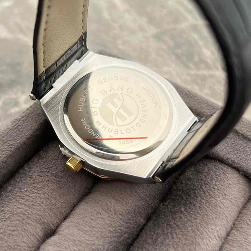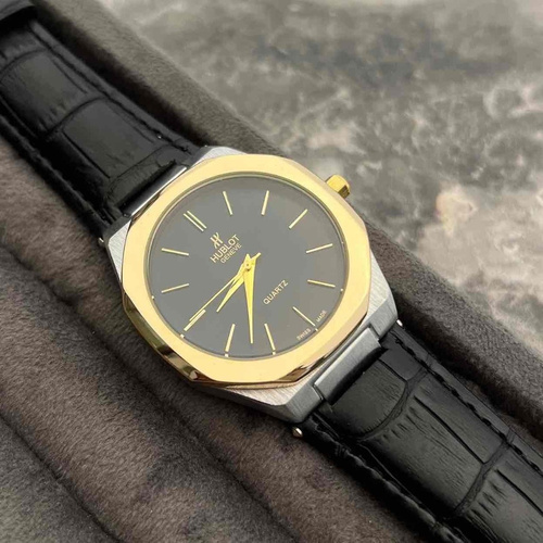 ساعت هوبلو مردانه بند چرم مدل 2025 قاب سیلور طلایی