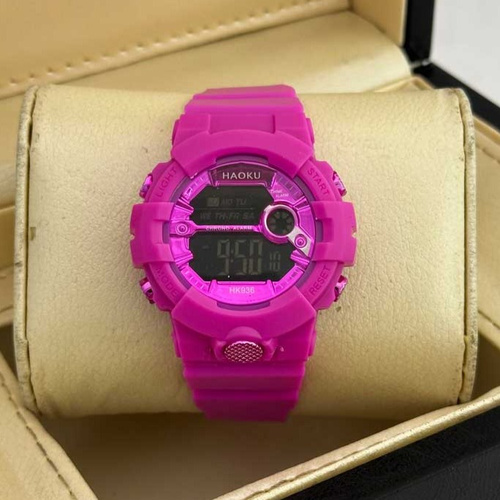 ساعت اسپرت دخترانه و پسرانه طرح جی شاک SPORT سرخابی چراغدار آلارمدار