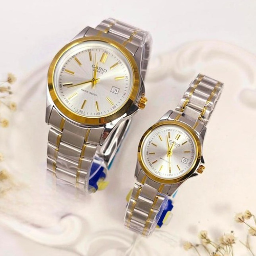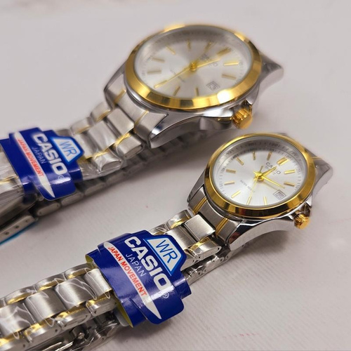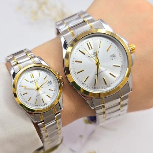 ست ساعت زنانه و مردانه کاسیو ترند سیلور بند دورنگ